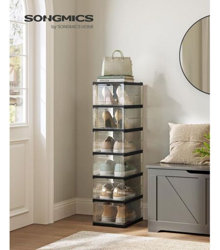 SONGMICS - Scatole per Scarpe, Set di 6 Organizzatori Porta Scarpe Impilabili, Scarpiera Pieghevole e Componibile, per fino alla Taglia 46,
