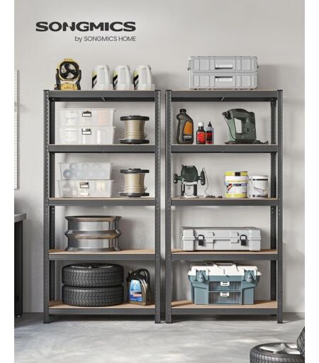 SONGMICS Set di 2 Scaffali in Metallo, Scaffalature a 5 Ripiani Regolabili, Senza Viti, Scaffale Salvaspazio per Garage, Magazzino, Portante 875 kg, 40 x 90 x