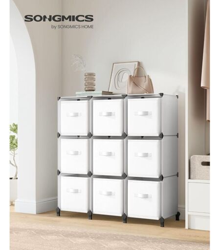 SONGMICS - Scaffale Componibile a Cubi con Scatole Portaoggetti di Tessuto, Armadio Modulare a 9 Scomparti, Personalizzabile, Espandibile, Camera da