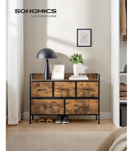 SONGMICS - Cassettiera per Camera da Letto, 5 Cassetti in Tessuto con Maniglie, Mobiletto Portaoggetti, per Soggiorno, Corridoio, Struttura in