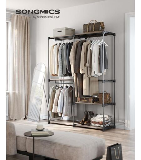 SONGMICS - Armadio Portatile, Guardaroba Autoporante, Portabiti con Ripiani, Binnari Appendiabiti, Organizzatore, per Guardaroba, Camera da Letto,