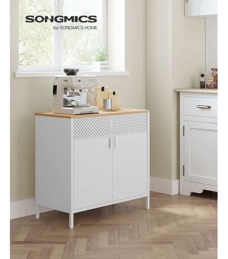 SONGMICS Mobile, Organizzatore, Armadio in Metallo, con Doppia Anta, Chiusura Magnetica, Ripiani Regolabili, Struttura in Acciaio, Colore Naturale e