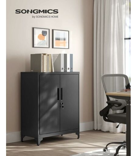 SONGMICS Armadietto in Metallo, Mobiletto Multiuso, Armadio a 2 Ante da Ufficio, Mobile con Serratura, in Acciaio, per Studio Soggiorno, Nero