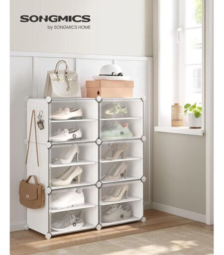 [Grande capacità] Questa scarpiera può contenere fino a 24 paia di scarpe. Oltre alle scarpe, può anche organizzare borse e vestiti. I ganci al lato possono essere utilizzati per appendere borse o guinzagli per cani, sfruttando appieno lo spazio [Robusto e sicuro] La scarpiera è composta da pannelli di plastica con telaio in filo d'acciaio collegati da connettori di qualità, ogni scomparto regge 5 kg e, il kit antiribaltamento incluso lo rende più sicuro sia in soggiorno che in camera da letto [Facile da montare e smontare] Nella confezione è incluso un martello di gomma e ferro, puoi assemblare rapidamente questo portaoggetti modulare senza l'ausilio di altri strumenti; inoltre, può essere facilmente smontato per essere riposto e trasportato [Flessibile e versatile] Può essere assemblato in 2 o 3 colonne in base alle esigenze, o anche diviso in due piccoli scaffali; utilizzato in entrata, corridoio o bagno, per riordinare scarpe, vestiti o forniture per il bagno, decidi tu come ...