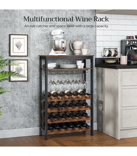 SONGMICS - Portabottiglie da Terra per 24 Bottiglie, Scaffale per Bottiglie di Vino e Calici, Portabicchieri, Cantinetta per Cucina, Bar, Sala da