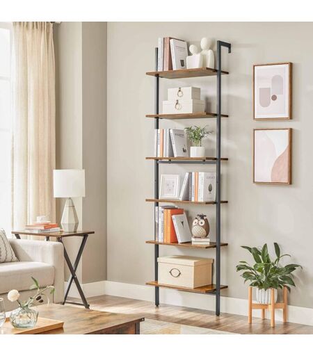 VASAGLE - Scaffale a Scala, Scaffale contro Parete a 6 Ripiani, Libreria Portaoggetti, per Soggiorno, Ufficio, Cucina, Camera da Letto, 60 x 30 x
