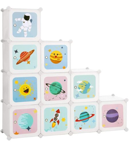 1.PORTA L’ORDINE TRA I GIOCHI: Razzi, astronauti e pianeti—il tuo piccolo esploratore spaziale griderà dall’eccitazione appena vede questo scaffale portagiochi a tema spazio; desidererà nasconderci i suo giochi dopo aver finito di divertirsi 2.UN TOCCO DIVERTENTE: Disegni piacevoli, un sacco di spazio e un accessorio antiribaltamento incluso per più sicurezza rendono questa unità con 10 cubi di 30 x 30 x 30 cm un’aggiunta accogliente in cameretta, stanza dei giochi e scuola dell’infanzia! 3.UN NIDO CHE ACCOGLIE TUTTI: Aiuta il tuo piccolo a prendere buone abitudini dell’organizzazione con questo scaffale portagiochi! Tutti i suoi giocattoli, vestiti o libri avranno una casa comoda in ogni cubo con portata max di 10 kg 4.SICUREZZA SUA, PRIORITÀ NOSTRA: Guardare il tuo piccolo giocare e crescere con sicurezza è il tuo desiderio più grande, ecco perché il mobile è in plastica PP che, amichevole con bambini, ha superato il test di TÜV Rheinland (rapporto n.: 244235596a 001) 5.FACILE COME ...