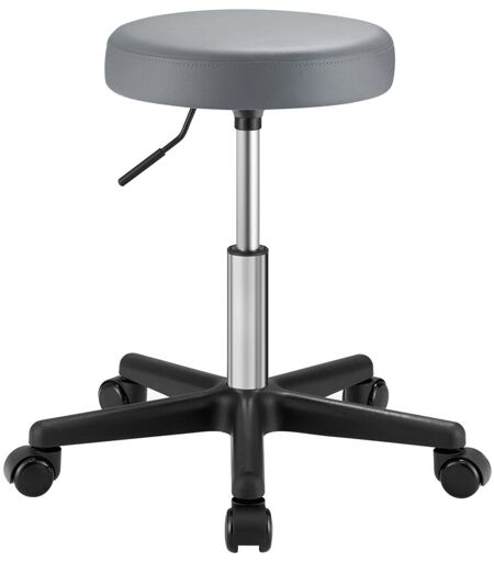 SONGMICS Sgabello Girevole con Ruote, Altezza Regolabile 46-58 cm, Sgabello da Bar Imbottito Rivestito in PU, Sgabello da Lavoro per Studio Ufficio Salone di Bellezza, Grigio Tortora LJB061G01 ...