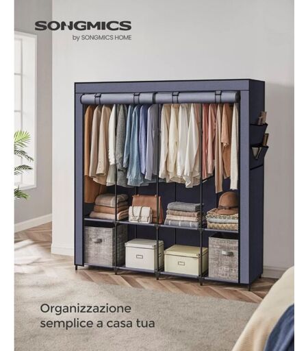 SONGMICS - Guardaroba, Armadio Portatile, Porta Abiti con 4 Barra Appendiabiti, Ripiani, 4 Tasche Laterali, 45 x 170 x 167 cm, Grande Capienza per