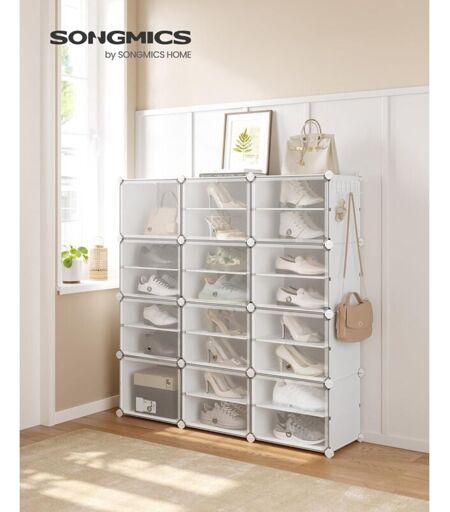 SONGMICS - Scarpiera a 12 Scomparti, Scaffale Portaoggetti Modulare, Scomparto di 30 x 40 x 30 cm, con Sportello, Telaio in Acciaio, Pannelli di