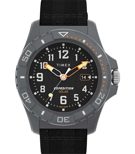 Orologio Da Uomo Di Timex Della Collezione Expedition North Freedive Ocean. Orologio Con Cassa Tonda Di Diametro 46 Mm, Realizzata In #Tide Ocean Material® Grigio E Quadrante Nero, Il Cinturino È In #Tide Ocean Material® Di Colore Nero E Chiusura A ...