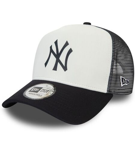 NY Yankees MLB E Frame trucker regolabile, con logo NY ricamato sul davanti, visiera curva blu navy, corona strutturata bianca, bandiera New Era sul lato sinistro. ...