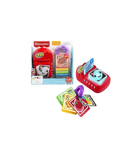 I bambini possono unirsi a una serata di divertimento in famiglia con il giocattolo Ridi e Impara Baby UNO Numeri e Colori di Fisher-Price! Questa versione di UNO, a misura di bebe', include 5 carte per i giocatori piu' piccoli da inserire nel lettore per farlo illuminare con tante luci e musiche, suoni e frasi divertenti mentre imparano i numeri, i colori e gli oggetti raffigurati su ogni carta. Inoltre, grazie al pratico anello per collegare le carte, potete portare con voi il suo 'gioco' preferito ovunque andiate! Usa il pulsante del globo per selezionare una lingua: inglese, italiano, portoghese o spagnolo castigliano. ...