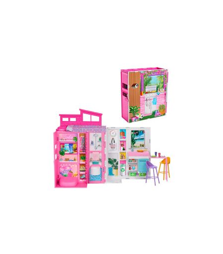 Questa simpatica e colorata casa delle bambole di Barbie pieghevole offre tantissimo divertimento e innumerevoli avventure in vacanza! Include quattro aree di gioco per ispirare tantissime storie: cucina, bagno, camera da letto soppalcata e angolo cinema, oltre ad affascinanti accessori decorativi. Barbie Casa delle Vacanze e' un regalo perfetto per bambini e bambine dai 3 anni in su! Bambola INCLUSA. Inventa tantissime storie con Barbie Casa delle Vacanze! Include 4 aree di gioco e 11 accessori per infinite ore di divertimento. Gli accessori decorativi, tra cui stoviglie assortite, 2 sedie, un asciugamano e una coperta, aggiungono dettagli realistici e offrono la possibilita' di inventare tantissime storie. Gli elementi grafici come il cestino dei rifiuti, il contenitore per il compost, le piante, i pannelli solari sul tetto e un veicolo elettrico possono aiutare i bambini e le bambine ad adottare abitudini ecostostenibili! La casa delle bambole include una cucina con tavolo estraibile, un bagno, una camera da letto soppalcata e un accogliente salotto per le serate cinema e gioco! ...