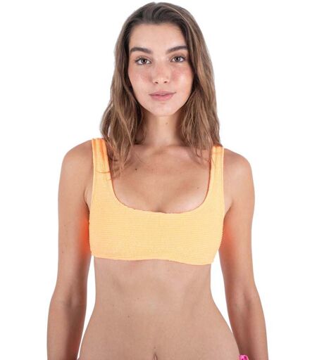 Hurley Top Bikini Solid Soft Scrunch Pull On Sunrise XS