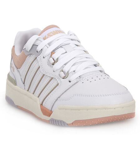sneaker da donna k-swiss il modello da tennis classic con 5 strisce la tomaia in pelle e chiusura con lacci. colore: bianco-albicocca. ...