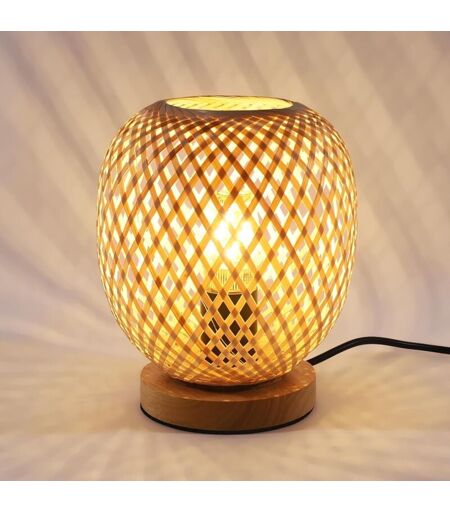 COMELY - Lampada da tavolo in bambù intrecciato, lampada da comodino con paralume in bambù di design e base in legno naturale per camera da letto,