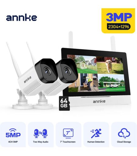 ANNKE Sistema di telecamere di sicurezza wireless da 3 mp con audio bidirezionale, rilevamento del movimento, scheda sd da 64 gb -