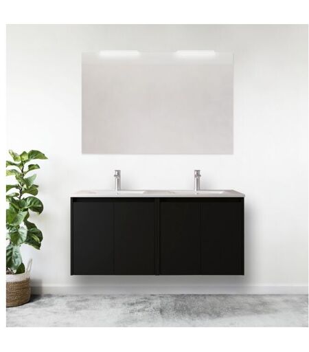 CAESAROO Mobile bagno sospeso 120 cm 4 ante in legno nero satinato con lavabo ad incasso - Nova - Con specchio e doppia lampada led