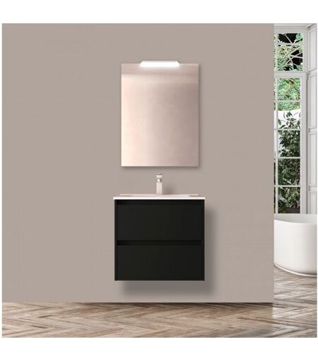 CAESAROO - Mobile bagno sospeso 60 cm 2 cassetti in legno nero satinato con lavabo a incasso - Nova - Standard
