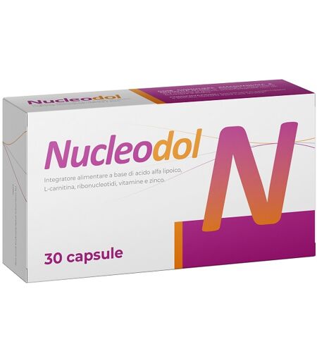 Nucleodol - Descrizione Integratore alimentare a base di acido alfa lipoico, L - carnitina, ribonucleotidi, vitamine e zinco. Ingredienti Acido alfa lipoico, L - acetil carnitina cloridrato, uridina 5' monofosfato (UMP), sale disodico, acido citidina 5' monofosfato (CMP), capsula (gelatina; coloran… ...