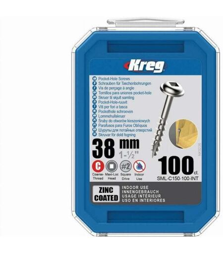 KREG - Vite in zinco 38 mm con filettatura grossa - Confezione da 100 viti - SML-C150-100-INT