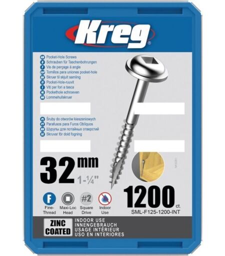 KREG - Vite a tazza 32 mm con rivestimento in zinco Maxi-Loc, filettatura fine SML-F125-1200