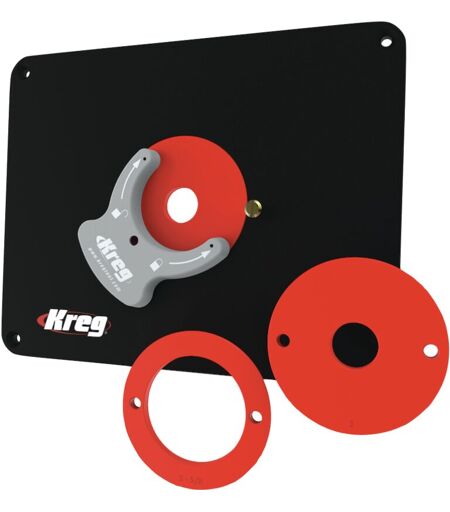 KREG - PRS4034 Piastra preforata per base fresatrice 298 x 235 x 9 mm + 3x Anelli di riduzione 25 mm / 30 mm / 67 mm