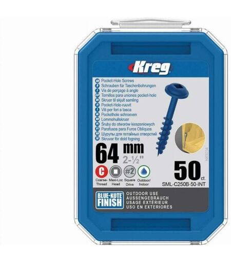 KREG Vite Blue-kote - 64 mm con filettatura grossa - Confezione da 50 viti - SML-C250B-50-INT