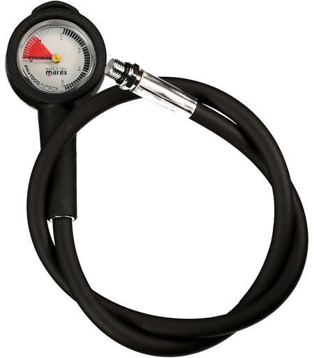 Manometro MARES MR-1 PSI/Piedi: Il tuo compagno di immersione affidabileIl manometro subacqueo MARES MR-1 PSI/Piedi è un manometro robusto e preciso progettato per i subacquei che esigono prestazioni affidabili. Questo manometro analogico fornisce letture chiare e concise della pressione della bombola, consentendo di monitorare il consumo d´aria con facilità e sicurezza.Costruito per resistere ai rigori dell´immersione, l´MR-1 è dotato di una robusta cassa in ottone cromato che resiste alla corrosione e garantisce prestazioni durature. Il tubo ad alta pressione è altrettanto robusto e fornisce un collegamento sicuro al tuo erogatore di primo stadio.Prova una leggibilità cristallina anche in condizioni subacquee difficili. L´ampio quadrante luminescente presenta scale contrastanti sia in PSI che in Piedi, offrendo una comprensione immediata della riserva d´aria rimanente. I contrassegni luminosi garantiscono la visibilità anche in ambienti con scarsa illuminazione, migliorando la sicurezza durante le immersioni.Compatto e leggero, l´MR-1 è progettato per integrarsi perfettamente con l´attrezzatura subacquea esistente. Il suo profilo aerodinamico riduce al minimo l´attrito e massimizza il comfort, consentendo di concentrarsi sull´immersione senza distrazioni.Che tu sia un subacqueo ricreativo che esplora barriere coralline vivaci o un subacqueo tecnico che si avventura in profondità maggiori, il manometro MARES MR-1 PSI/Piedi è uno strumento essenziale per esperienze subacquee sicure e piacevoli. ...