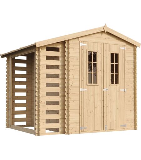 TIMBELA Casetta Giardino - Casetta da Giardino in Legno con Legnaia da Esterno - L206xL272xA218 cm/ 3,53 m2 + 0,97 m2 - Piccola Casetta in Legno da Giardino,