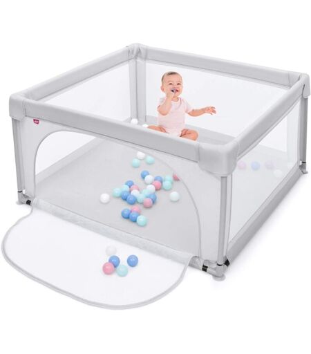 COSTWAY - Box per Bambini, Centro Attività Portatile con Cancelli di Sicurezza, Recinto Resistente con Ventose Antiscivolo e Pareti a Rete