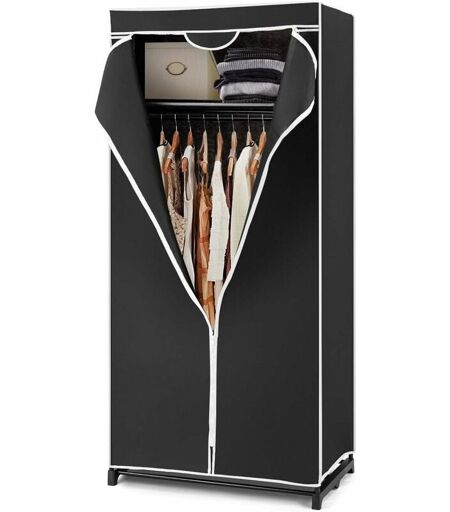 GOPLUS Armadio per Camera da Letto Tessuto Non Tessuto, Guardaroba Appendiabiti Pieghevole con Scarpiera 75x50x170cm (Nero) -