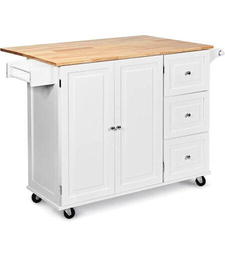GOPLUS Carrello da Cucina, Armadietto da Cucina con 4 Ruote e 3 Cassetti, Facile da Pulire, Credenza di Servizio in Legno, 136x76x91 cm (Bianco) -