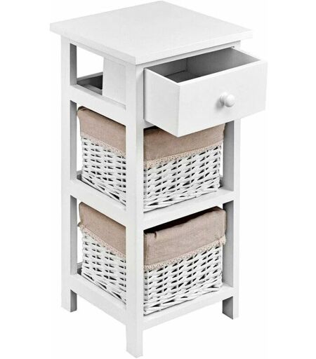 GOPLUS Comodino di 3 Ripiani in Legno, con Cassetto e 2 Cestini, Ideale per Soggiorno e Camera da Letto, di Stile Moderno, 28x26x60 cm (Bianco, 1 Pz)