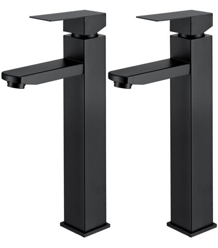 HOMELODY - 2X Rubinetto per bagno nero, miscelatore per lavabo alto con maniglia quadrata, rubinetto lavamani rimovibile, miscelatore per acqua calda