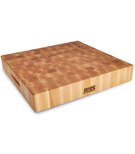 Tagliere in Acero del Nord America solido e resistente con angoli smussati utilizzabile da entrambi i lati. Made in USA. Realizzato con legno frontale. Impugnature ai lati. Prodotto di qualita' rinnovabile e sostenibile. Adatto per la preparazione di qualsiasi cibo. Resistente a tutti i tipi di lama. Dimensioni: 46 cm x 46 cm x 7,5 cm. Peso: 9,52 kg. ...