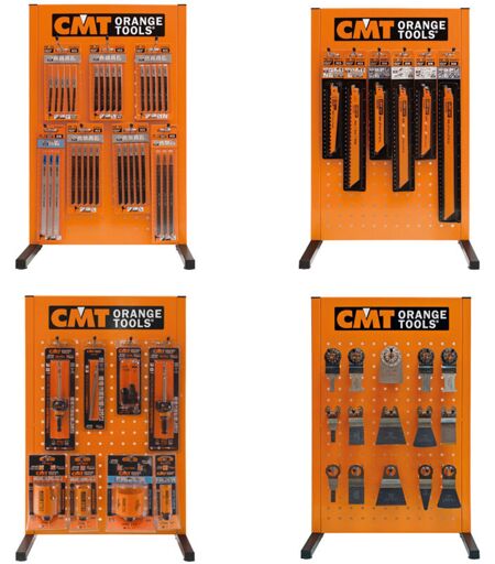 03.00.0043 Questi espositori, semplici e allo stesso tempo estremamente funzionali, renderanno impeccabile la visibilità dei prodotti esposti. Progettati per supportare una grande varietà di utensili come seghetti, gattucci, oscillatori, frese, punte e Forstner, seghe a tazza e lame. Il miglior modo per invogliare all’acquisto! Solidi, robusti e realizzati nel colore arancione CMT, impossibile da non notare! Utensili non inclusi. ...