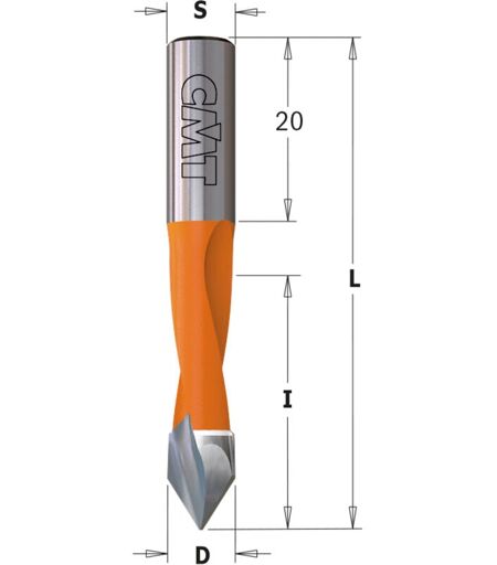 368.080.12 PUNTA FORATRICE F/PASS. HW S=8X20 D=8X43X70 SX Per pannelli di spessore max 35-40mm. CARATTERISTICHE TECNICHE: • Realizzate con acciaio speciale ad alta resistenza. • Rivestimento in resina fluorocarbonica P.T.F.E. nero e arancio. • Cuspide in HWM. • 2 taglienti (Z2). • 2 gole elicoidali. • Attacco con piano di fissaggio e vite per regolazioni assiale. ...