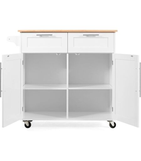 GOPLUS Isola da Cucina con Ruote e Armadietto a 2 Ante, Carrello di Stoccaggio Grande con Piano in Legno di Gomma, Cassetti, Porta Asciugamani, Carrello