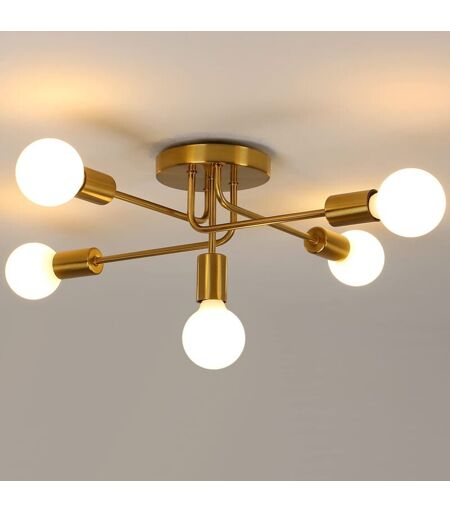 GOECO Lampadario industriale, 5 Luci E27 Plafoniera in Metallo, Plafoniera Oro, Plafoniera Retrò per Soggiorno Cucina Sala da Pranzo Camera da Letto -