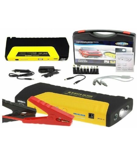 Kit di emergenza 8 in 1 multifunzione. Avviamento motore, Power Bank per carica rapida USB, Caricabetterie Notebook, Emergenza, Torcia a LED, Uscita 10A Design robusto ed impermeabile. Vasta compatibilità E' in grado di far partire moltissimi motori (auto, suv, barca, moto etc...) e ricaricare tutti i tuoi dispositivi elettronici grazie alle porte USB e la funzione Notebook Charger. Avviatore di Emergenza: Car Jump StarterQuesto Avviatore di Emergenza, con 600A di corrente di picco, può rapidamente avviare un motore a benzina(fino a 5L) Diesel (fino a 3L) circa dalle 10 alle 20volte con una carica completa. Macchina, SUV, moto, barca etc...qualsiasi motore dotato di normale batteria a 12V. Avviamento motore, Power Bank per carica rapida USB, Caricabetterie Notebook, Emergenza, Torcia a LED, Uscita 10A Design robusto ed impermeabile. Vasta compatibilità E' in grado di far partire moltissimi motori (auto, suv, barca, moto etc...) e ricaricare tutti i tuoi dispositivi elettronici grazie ...