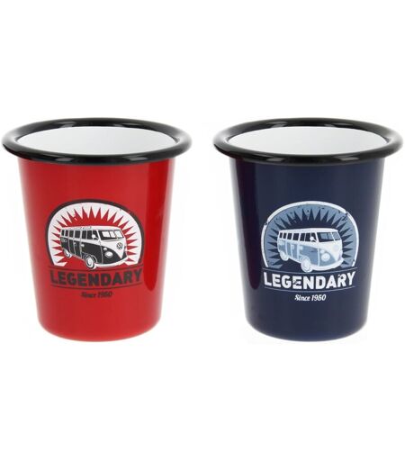 NONE BRISA VW Collection - Volkswagen Set di 2 Bicchieri in Metallo smaltato da tè, caffè, Latte, Cappuccino, Campervan Bus T1 Design (Rosso & Blu/310ml)