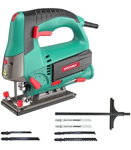 NONE Seghetto Alternativo 800W, HYCHIKA Profondità di Taglio 110mm, 800-3000RPM, 6 Velocità variabile, Angolo di Inclinazione Regolabile da ±45 °,Adatto a