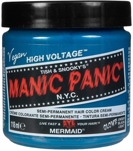 Mermaid è una tinta fresca blu oceano con sfumature leggermente verdi. Questo colore si illumina sotto la luce UV quindi si consiglia di schiarire i capelli fino al raggiungimento di un biondo molto chiaro (livello 11) prima dell'uso. -Vegano, non testato sui animali , senza parabeni, senza ammoniaca, senza PPD! -Confezione richiudibile per un uso più lungo, viene fornito con le istruzioni -Durata: 4/6 settimane Formato 118ml. ...