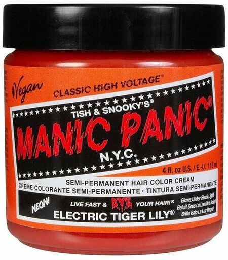 Electric Tiger Lily è un colore arancione brillante che si illumina sotto la luce UV quindi per ottenere i migliori risultati, si consiglia di schiarire i capelli fino al raggiungimento di un biondo molto chiaro (livello 11). -Vegano, non testato sui animali , senza parabeni, senza ammoniaca, senza PPD! -Confezione richiudibile per un uso più lungo, viene fornito con le istruzioni -Durata: 4/6 settimane Formato 118ml. ...