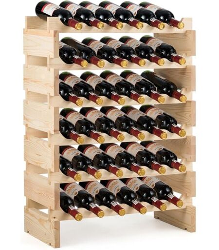 Ci sono 36 spazi per vino rosso il tuo vino. La fessura a forma di arco fa sì che l'imboccatura della bottiglia di vino rosso sia rivolta verso il basso e che il corpo del vino prema contro il tappo per impedire all'aria di entrare dopo che il tappo si è asciugato, mantenimento della freschezza e del sapore del vino. Realizzato in pino silvestre di alta qualità , lo scaffale dura a lungo. Il cantina vini legno è molto stabile , non trema e non si deforma né si incrina facilmente. La facilità di accesso rende lo scaffale la scelta perfetta per l'archiviazione e l'esposizione . Dato che è impilabile , si può trasformare in un piccolo portabottiglie sulla credenza o in un portabottiglie in cantina di grande capacità. Può essere installato in base alle esigenze individuali come quattro, cinque ripiani, ecc. fino a 36 bottiglie di vino rosso, molto pratico. Il semplice montaggio non richiede attrezzi e le chiare istruzioni aiutano a completare il processo di assemblaggio in pochi secondi . ...