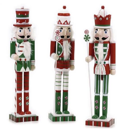 COSEDACASA Set di 3 Soldatini Schiaccianoci Natalizi pezzi da collezione h38 rosso bianco verde candy caramella dolci cake design idea regalo