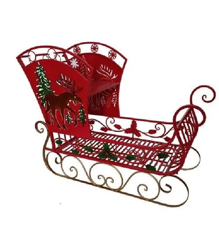 COSE DA CASA - Slitta rossa di Babbo Natale grande in Metallo cm 120 con Agrifogli e Renne alberi regali doni ai bambini allestimenti decorazioni