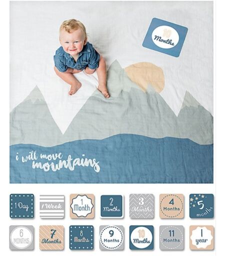 Questo kit di Lulujo include 1 copertina swaddle e 14 cartoline; unidea originale e frizzante per i genitori e i bebe piu social! Utilizza la copertina swaddle come sfondo per fotografare il tuo piccolo durante il suo primo anno di vita: distendi il bebe sulla copertina, inserisci la cartolina giusta nello scatto - 1 mese, 3 mesi, 6 mesi ecc. - aggiungi qualche giocattolo o altro oggetto che personalizzi la posa e carica la foto sui tuoi social network! La copertina e ideale per mille altri usi, misura 100 x 100 cm ed e realizzata in pura mussola di cotone 100%. Lavabile in lavatrice a 40°, diventa piu morbida ad ogni lavaggio. ...